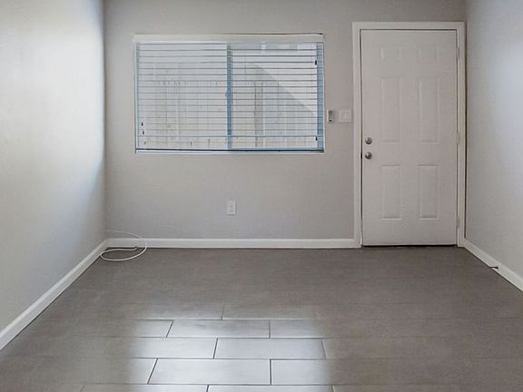 Beautiful updated 1 bedroom apartment with 12"x24" tile flooring throughout. Updated colors with washer and dryer in the unit. Stainless kitchen appliances in kitchen with new cabinets. USB plugs for your technologies. Ceiling fans in bedroom and living room. Fenced apartment back patio area. Fencing around the complex with assigned parking space. Owner pays for water and trash. Tenant pays for electric, gas and wifi. No Pets. No smoking