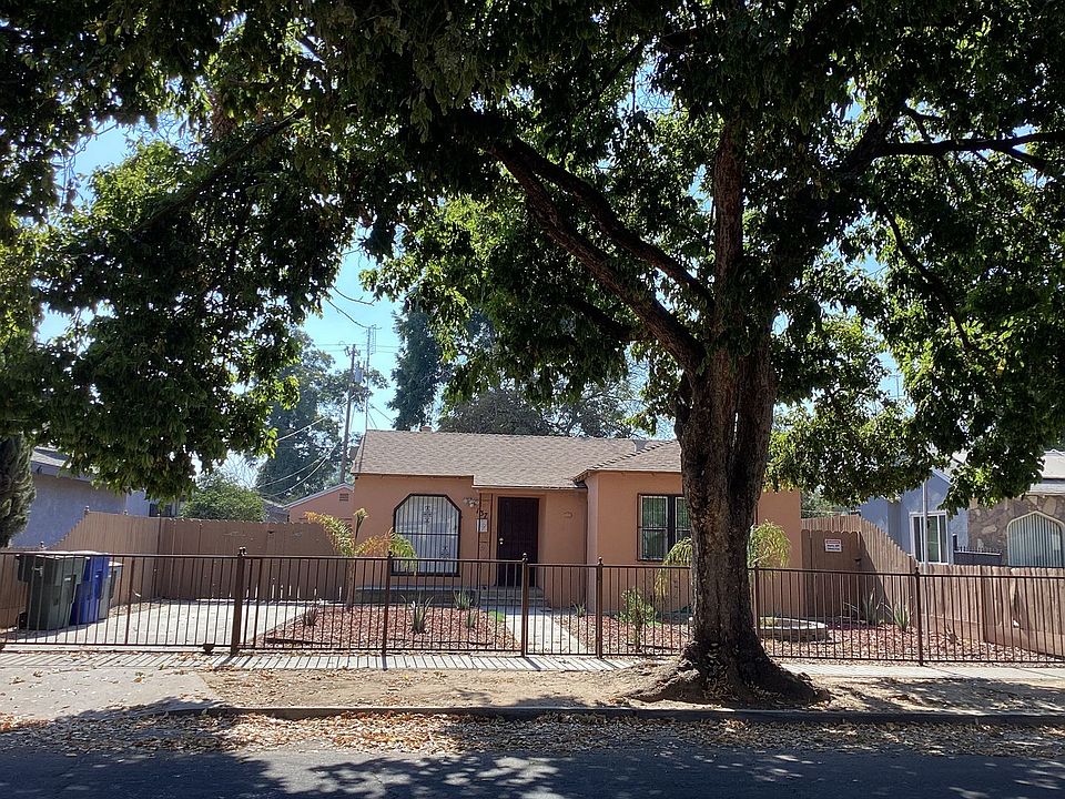 This Remodeled single family home has approximately 816 square feet, a living room, dining area, NEW laminate flooring, hardwood floors in bedrooms, tile floors, tile counters; gas range, laundry hookups, wall heater, window A/C units, ceiling fans in every room, 1 car garage with manual doors, fenced and landscaped front yard & HUGE private backyard. Take N. Chestnut Ave to E. Hedges Avenue. Close to schools, parks, shopping. Renter's Insurance Required. One Year Lease Required. No Pets. L/D!