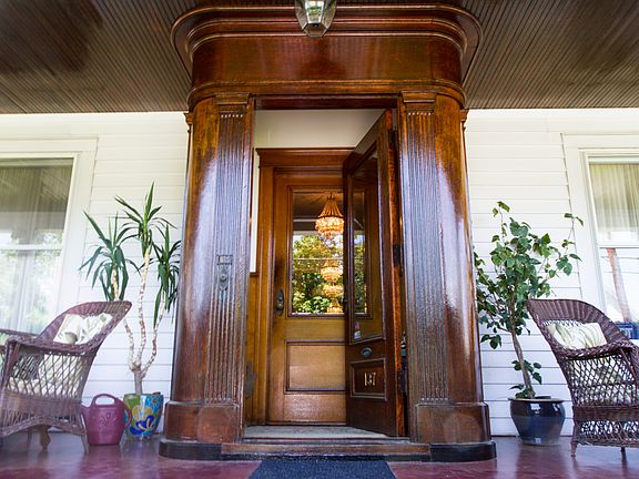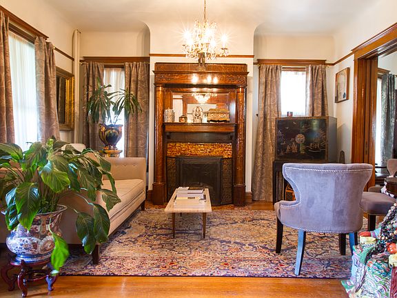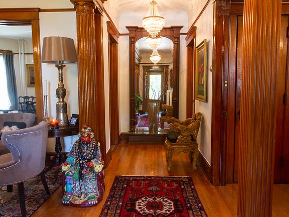 This elegant Turn of the Century estate/home is abundant with the warmth of Chestnut woodwork including the breathtaking carved entry vestibule along with the grand paneled oak staircase, pocket doors, butler's pantry, fluted columns, pristine hardwood floors just to mention a few of the extensive original period features.