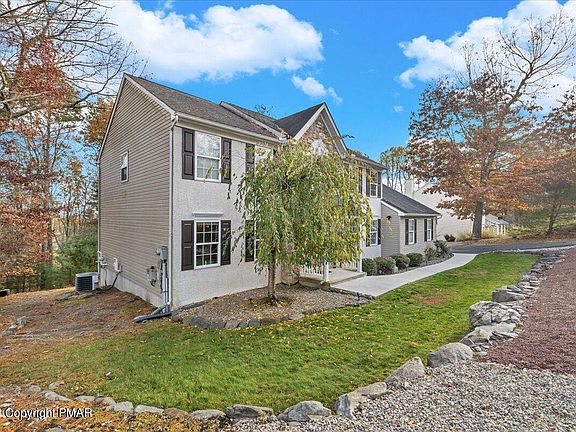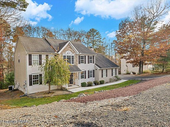 NEW HOME FOR THE HOLIDAYS! Move the whole family in this STUNNING COLONIAL, which boasts 4 Bedrooms, 2.5 Baths in Blue Mtn Lake! REMODELED KITCHEN and BATHS! NEW Floors and Counters Throughout. Family room w/ FIREPLACE AND CUSTOM BUILT-INS Grand PRIMARY SUITE w/ Vaulted Ceilings, Walk-In Closets. Ensuite w/ JETTED SPA TUB and SEPARATE SHOWER. Full FINISHED WALKOUT BASEMENT w/Gym, add'l Family Room, and Office. Can Convert to In-law Suite. Two Car Garage, Beautifully Landscaped, Paved Driveway, Lg DECK W/ SINK and GRILL. INCREDIBLE VIEWS of the Water Gap and glimpses of the lake. STROUDSBURG SCHOOL DISTRICT! AMENITY-FILLED COMMUNITY with Clubhouse, Lakes, Fishing, Pools, Walking Trails, Tennis and Basketball Courts, and more! Convenient COMMUTER LOCATION. Short-term Rental Friendly.