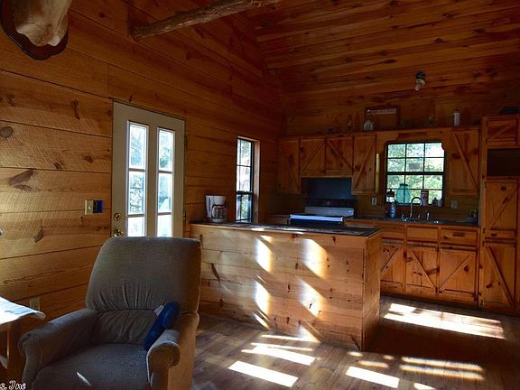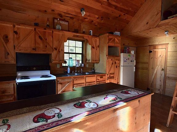 Nestled into the woods on 2 acres just five miles out of town, this cute 820 sq ft newer cabin is the perfect getaway. Offering an open kitchen/dining/living area, 2 bedrooms and 1 bath on the main level plus 1 loft bedroom. Separate laundry/utility room and storage shed. All appliances stay. Most of the work is completed. Great deal for the handyman who can add the finishing touches.