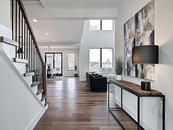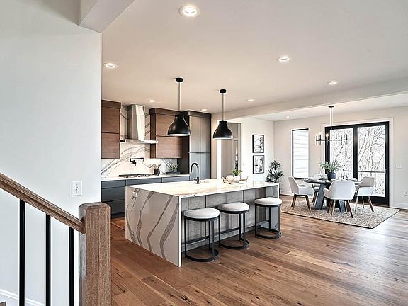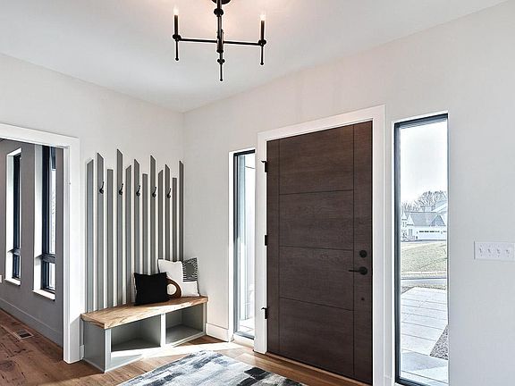 Designer details abound in this stately 2-story home with contemporary style exterior complete with fiber cement siding, attractive stone veneer, a welcoming front porch, and a daylight basement. A 3-car garage leads to the entry with built-in lockers and bench. To the front of the home is the study and elegant dining room with cathedral ceiling. A convenient butler’s pantry and large pantry lay between the dining room and the open kitchen with quartz countertops, quartz slab backsplash, stainless steel appliances and large center island. The sunny breakfast area provides access to the composite deck. The 2-story great room features a cozy fireplace with full height tile surround and box beam. The well-appointed first floor owner’s suite with tray ceiling boasts a private bathroom with quartz countertop vanity, a custom tile shower, and an expansive closet. On the 2nd floor are 3 additional bedrooms with spacious closets, 2 full bathrooms, and loft space.