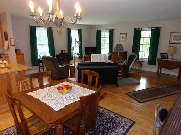 Looking for a quiet, private country setting yet convenient to services? This Custom built, open concept dormered Cape with farmers porch has so much to offer. The wide open kitchen/living/dining great room features wood floors, hickory kitchen cabinets, center island and recessed lighting providing a wonderful space for entertaining. 1st floor master en suite with transom windows, dual vanities, walk-in closet and 1st floor laundry room allows for convenient one floor living. Comfy radiant heat floors. 2nd floor has 2 spacious bedrooms with double closets and a full bath. Enjoy bug free dining and relaxing on the screened back porch. Expansion potential in the walk out lower level with overhead door garage door and double glass doors. 2 car detached garage with storage above. Wired for generator and back up wood heat option. Excellent curb appeal with circular drive.
