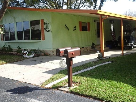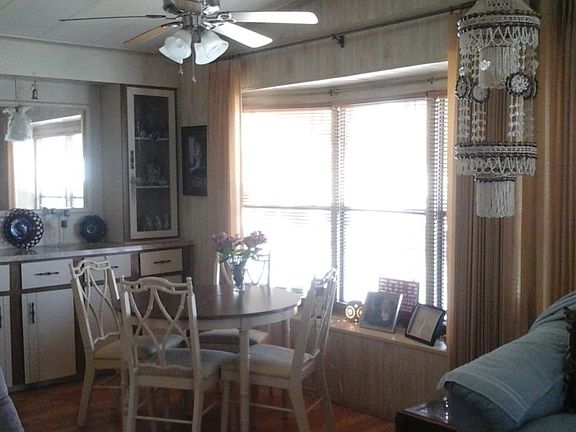 This beautiful 1984 Palm Harbor is a home you will enjoy forever. It has the biggest garage you could fine! The previous owner kept his well loved antique cars in this and still had room to move around. This is a 2424 garage with remote door opening can be for your cars or hobby! Or just your own man cave. Not only does it present it self nicely from the street (curb appealyes!) but it also wows you inside. The large Lanai (12.5 x 21) has double pane glass windows, carpeting and air conditioning. The roof on the home is shingle and close to brand new (2013 @ a cost of $9700). It has 2 bedrooms and 2 bathroooms, the master with a walk in closet and ensuite. Guest room has a private entrance to the Jack and Jill bathroom. Kitchen is roomy and has an almost new Refrigerator (2013) stove (2010). Ceiling fans (7 of them) throughout the home cut down on your air conditioning bill. This home is mostly unfurnished but does have a nice couch and end tables in the living room. All of this in an area with low lot rent. $479/month that includes trash pick up. Please call Jean 770-403-6859 or Paula 774-200-0808 for your own private showing.
