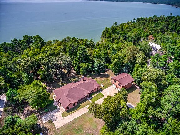 This incredible Spanish Style Waterfront Acreage on Lake Livingston is an absolute must see! This unbelievable estate sits on 5 acres of premium lake front land with a breath-taking hilltop view of the open water. You will be amazed by the attention to detail in the 3,388 SqFt main home, which consists of 3 bedrooms, 2 and a half bathrooms, spacious island kitchen, separate dining room, walk-in pantry, extra large study, large family room with double sided gas log fireplace that leads to the master suite with an enormous master bedroom and walk-in closet, and much more. The property also includes a 1,008 SqFt detached garage apartment with 2 bedrooms, a full bathroom, full kitchen and living area. Floor plan for both homes and property survey are available.