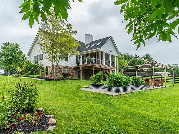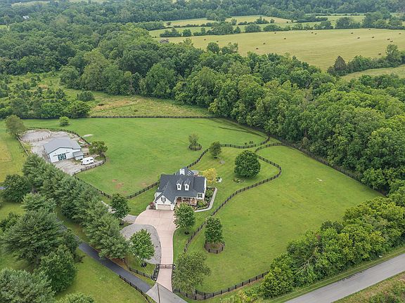 Horse Ready!!! This lovely stone and vinyl home sits on a 5 acre lot adjacent to a peaceful creek surrounded by a lushly treed view.2 Paddocks! The home has so much to offer with a 14' living room with a cozy fireplace, 13' dining room, 10' master with tray ceiling and sitting area and 9' bedrooms. The newly renovated kitchen is equipped with Quartz countertops, stainless appliances and beautiful cabinets. In the basement you will find a family room, recreation area, newly renovated kitchenette, full bath, 2 extremely large bedrooms and a storm shelter. Be sure to check out the finished loft space on the 2nd floor. Outside there is a wonderful screened in deck area for entertaining or summer cookouts. The newly renovated barn has 5 stalls, tack room, a large hay loft, and an attached shed for hay storage and also a small workshop with its own garage door. Barn is fully equipped with electricity and water. Check out the round pen available for limited turnout or lunging. Attached large run-in shed to the barn offers respite from weather and opens to one of the large paddocks. All of this within minutes of Lexington! Call today to book your showing!
