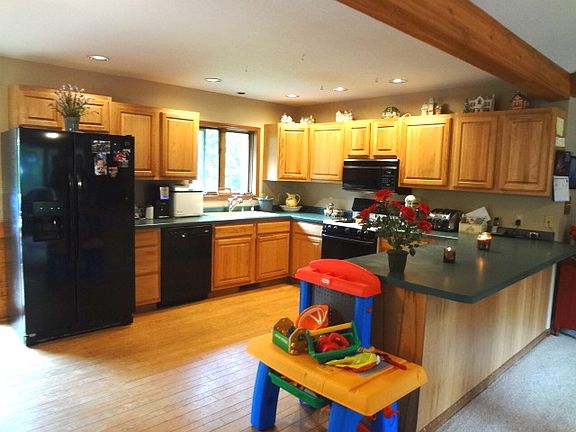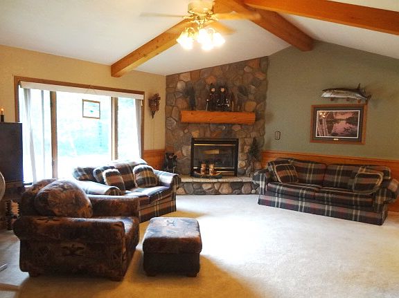 Welcome Home! Here's a wonderful family home close to Woodruff on a town rd but with complete privacy! Located at the end of a quiet cul de sac, this 4BR/2BA home has a spacious floor plan w/outdoor above-ground swimming pool for hours of backyard fun! This well built, well maintained home comes with a beautiful fieldstone, wood-burning fireplace, wainscoting, cathedral ceiling and beams in LR, open KT/DR with a breakfast bar, hardwood floors and abundant kitchen cabinets. The patio doors in the KT/DR open to a large wrap-around deck with a wonderful view of the yard and above ground swimming pool. There is also a MA BR, full BA and addnl BR on the main level. The lower level has 2 BR's, BA, laundry room and large Family Room for more family fun. Also included is a 2+ car garage and shed. Roof replaced in 2012, new refrig in 2013 and well pump in 2008. And it's zoned All Purpose, so the property can be used for a variety of uses. Call today for more information on this quality home!