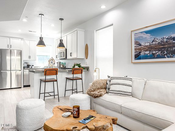 Enjoy stunning mountain views in this fully renovated, designer-appointed townhome in Nevis at Newpark! This two-bedroom / three-bath Park City retreat features an open concept living room/kitchen, gas fireplace, large windows, new specialty appliances, breakfast bar, bright dining area, and deck with BBQ, perfect for entertaining! There is a private heated southeast-facing rooftop deck and a new Hot Springs hot tub overlooking Swaner Preserve with panoramic views of nearby ski attractions. Situated in the heart of Park City's Newpark area, this prime location boasts a vast array of shopping and dining options within walking distance! The property is just a short drive from Utah Olympic Park, Canyons Village, Park City Mountain Resort, Deer Valley, and Historic Park City Main Street. This spacious 1,255 sqft. townhome is a hard-to-find corner unit that allows for plenty of natural sunlight. Oversized, attached one-car garage with direct entry to laundry room/mudroom makes cold weather gear easy to manage! And there is a full-sized dedicated driveway for additional parking! Bedrooms are spacious with ensuite bathrooms and ample closet space. Must see this gorgeous property!