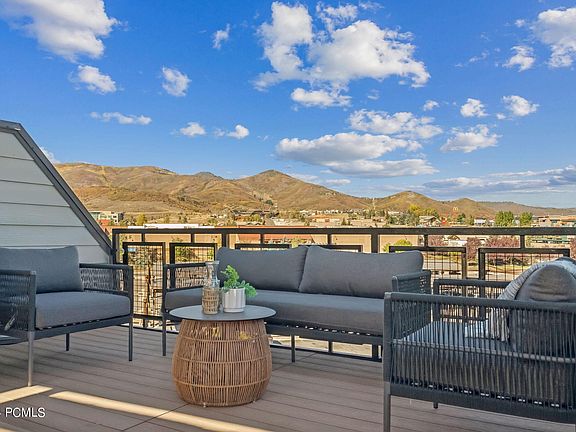 Discover this stunning 2-bedroom, 3-bathroom end unit townhome, offering a perfect blend of modern luxury and versatility. Ideally suited for second home buyers or investors, this Nevis townhome in the vibrant Newpark Town Center & allows nightly rentals & features a unique work/live, live/work space. Experience the best of urban living with a private rooftop deck that boasts breathtaking views of Swaner Nature Preserve and Olympic Park. The deck is equipped with a hot tub, a gas stub for grilling, and ample space for outdoor furniture ideal for entertaining and enjoying the 2034 Winter Olympic Games. Inside, the open floor plan is light and bright, featuring a gourmet kitchen with quartz countertops and a gas range. Upgrades throughout include laminate floors, alder wood doors, LED lighting, and custom blinds. The cozy family room is complemented by a gas fireplace and a balcony with a gas line for grilling (no more propane tanks!). Both bedrooms offer privacy and functionality with ensuite bathrooms, designer lighting, and a Euro glass walk-in shower enclosure. The home is designed with eco-friendly features such as 1.5 KW solar panels, energy-saving appliances, a tankless water heater, and CAT5 wiring. Additional amenities include a radon abatement system and front door wiring for a security camera. The oversized one-car garage with an owner lockout provides secure storage or rental flexibility. Located just steps from Maxwells, The Myrtle Rose, Cafe Rio, the movie theatre, Starbucks, Sushi Blue, Red Rock Brewery, Whole Foods, and the Basin Fieldhouse, this townhome offers unrivaled convenience. Enjoy endless options for dining, shopping, and entertainment all within a 3-block radius. Recreation and accessibility are key highlights, with Deer Valley, Canyons Village, Park City ski resorts, and Historic Main Street all within a 10-15 minute drive. The property is also only 25 minutes from Salt Lake City, with just one stoplight to the international airport.