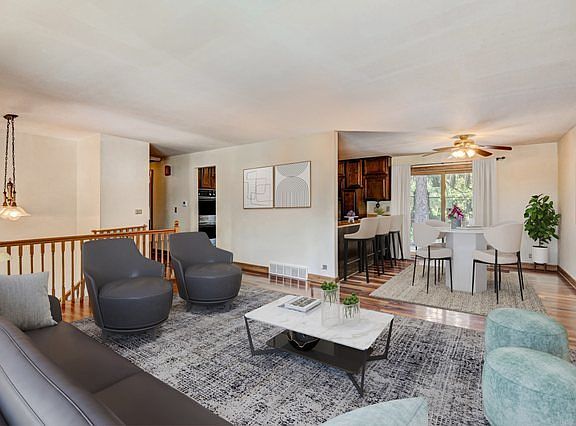 Back on the market and better than before! The back deck is in the process of being refurbished and will be in pristine condition. This home has so much potential. Freshly painted, 3 bedroom, 2.5 bath raised ranch with 2+ car attached garage. With a few modern updates and some TLC this house could be spectacular. The property features wood flooring, a large kitchen with loads and cabinets and counter space. Additionally, 3 nice size bedrooms and the primary bedroom with en-suite. The lower level has a large family room with wood burning fireplace, powder room and wetbar, perfect for entertaining. You will love the backyard with it's mature tree's, large deck (refurbished) and beautiful landscaping. Ideal location, near shopping, restaurants, Lake Opeka, UP-NW Metra station, and minutes from everything Rosemont has to offer. Welcome home!