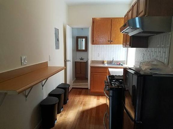 Available So Act Now! Lovely 2 bedroom apartment for immediate rent in the heart of Bushwick. Apartment has beautiful hardwood flooring throughout. One bedroom has pocket door no closet and the other bedroom has a closet. Nice size living room & kitchen with a work, or dine counter. Heat & hot water included. Gas & electricity not included. Clean building, 3 blocks from L train (either Halsey stop or Wilson) or several blocks to the Myrtle Ave M train line.