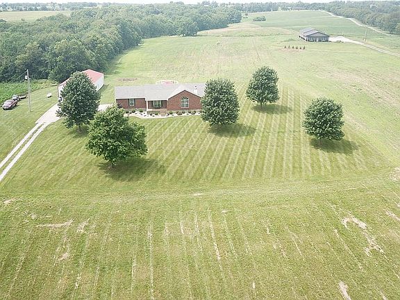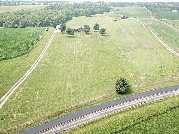 Welcome home to the quiet of country living. Sitting on 5.067 acres, this open living room and kitchen greets you as you enter the front, or back door. The master bedroom and en suite bathroom gives you plenty of space and storage in the walk in closet and additional double door closet. Down the hallway you are greeted with another full bath and two spacious bedrooms off to each side. The laundry room will lead you to the two car attached garage. You can look out onto the woods on your large patio, hot tub included. Also on the property a fire pit and detached garage, 30 x 63, 10 ft ceilings, with electric and water. Minutes away from Smith Berry Winery and the Henry County Country Club. 15 minutes from I-71. LP gas hot water heater and fire place. Water softener and all appliances stay with the house. New toilets in both bathrooms, April 2021. New carpet in 2 bedrooms, April 2021. New vinyl in both bathrooms, April 2021. New washer, November 2018. Flooring replaced in kitchen and living room, February 2017. Roof replaced, June 2014. Water heater replaced, August 2014.