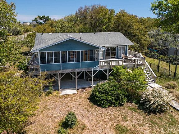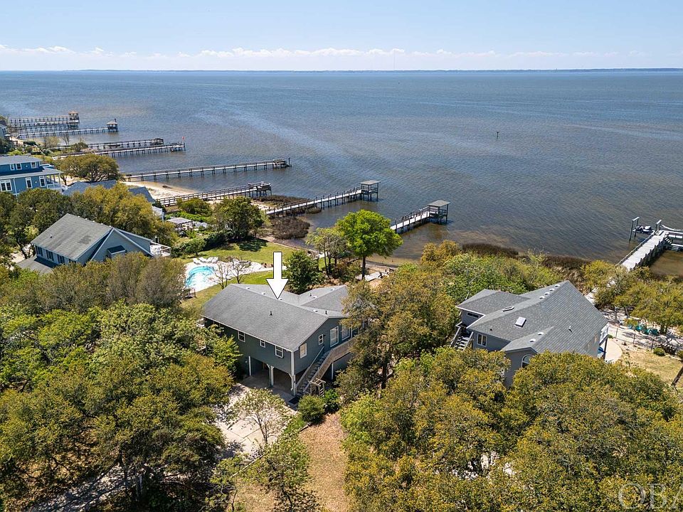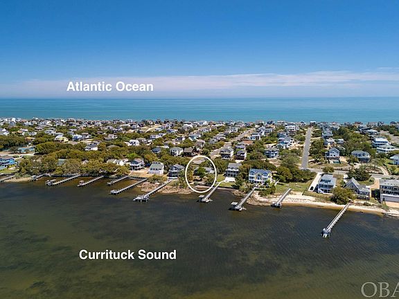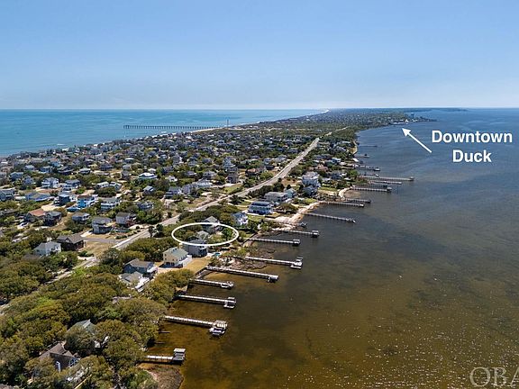 Welcome to your charming oasis by the sound in Duck, North Carolina! Nestled on the Currituck Sound just 1.5 miles to downtown Duck, this classic cottage exudes timeless character and cozy comfort. Adorned with charming details including beamed ceilings, original wood kitchen cabinets, and a large screened in porch offering indoor/outdoor living, this retreat offers a warm and inviting atmosphere that will make you feel right at home. Step outside on either the sun deck or oversized screened in porch to soak in the breathtaking views of the sound and witness stunning sunsets that will leave you in awe.  Designed for single story living, the main level offers 3 bedrooms including a primary bedroom with private en suite full bath, a shared hall full bath, and an open kitchen, living and dining area with endless water views.  The ground level offers a large carport, spacious storage room with laundry (638 unfinished sq.ft.) , covered deck, and access to the backyard (perfect for lawn games!) and private boardwalk leading to the waterfront dock.  Located in the Carolina Dunes subdivision, you will enjoy both sound and ocean community accesses with the community sound front pier just 3 lots away, and the closest community beach access just .3 miles away on the oceanside.  Enjoy walking/bike paths into downtown Duck where you can wine, dine, and shop.  Whether you're lounging on the sun deck, dining al fresco, or relaxing on the waterfront deck this sound front home is the perfect destination for your Outer Banks getaway.  A PROVEN RENTAL PRODUCER with almost $90,000 in gross income for 2023!  This home has been lovingly maintained with recent improvements including: new septic drain field 2009 with routine maintenance since, new roof 2012, new heat pump and air handler 2012, new flooring throughout and new bulkhead 2018/2019, all new electrical switches and outlets 2021, gutters added in 2021, new-newer appliances 2021-2024, new washer and dryer 2022, and new garage bay door 2022.
