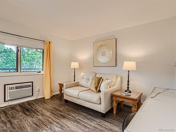 Just one block from the Light Rail, and minutes to Safeway, this freshly painted 1 bedroom/ 1 bathroom condo is in a great location! Newer appliances include refrigerator, self-cleaning oven, microwave, in unit washer and dryer. Brand new AC unit! Nice size bedroom with walk-in closet. Enjoy the spacious living room and personal deck. Kitchen with tile countertops and breakfast bar. One designated parking spot and storage unit in addition to shared community grills, play park, and greenbelt. HOA includes heat! Other utilities included are sewer, water, trash and snow removal. Don't miss the opportunity to own this unit. Schedule your showing today!