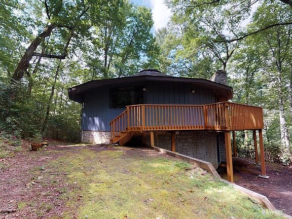 This sweet 2 bedroom 2 bath rondette is serenity at its finest and is being sold fully furnished. Located in the Blue Ridge Mountains on 14.8 beautiful acres with a potential view that could be opened up, it is the perfect place to get away from the hustle and bustle of city life. The elevation of the cabin is 3600 ft, and it is located across the street from the neighborhood's signature waterfall, Laurel Falls, which can be heard from the large wrap around deck. Home has been well maintained. The decks have just been stained; newer appliances and a 50 year roof was installed in 2007. Features include a wide open floor plan with large masonry stone fireplace in the living room. The fireplace currently has gas logs which are great for taking the chill out of the mountain air or convert it back to a wood burning fireplace which opens up the option of putting in a wood burning stove in the lower level. The spacious lower level could be finished off for additional living space or use it as these owners have, for a workshop and artist studio. There is insulation between the upper level and lower level for sound proofiing. Enjoy relaxing on the large wrap around deck while you take in the sights and sounds of peaceful nature surrounding you. Laurel Falls is located in Glenville, NC, and offers beautiful Robinson Creek for trout fishing. This community also adjoins Panthertown Valley National Forest, a 6300 acre oasis of trails for biking, hiking or horseback riding. There is a well appointed grocery store in the village of Cashiers, NC that you can be at in 1/2 hour. Enjoy one of the many gourmet or family style restaurants offered in the area or shop at the boutiques that line Highways 64 and 107. There are free concerts every Friday in season at the crossroads of Cashiers in the Village Green. The town of Highlands, NC is 20 minutes from Cashiers, so you will never run out of things to do here. So what are you waiting for? Call today for your private showing.