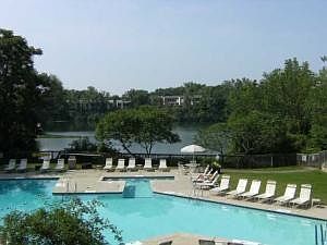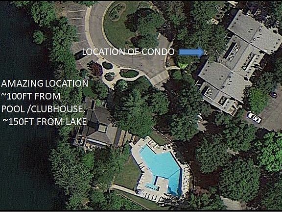 Beautifully renovated unit with VIEWS of the quarry. Located close to the lake/beach and just 100ft from the pool & clubhouse. Nice kitchen & bath, A/C, new refrigerator and great balcony of bedroom. Beautiful patio with fireplace. Wood burning fireplace in living room as well. Laundry Hookups. Nice walk-in closet. $245 condo fee covers water, gas, pool, clubhouse, beach, quarry, building insurance, landscaping and maintenance. Complex in process of having exteriors painted. Gated entrance to complex.