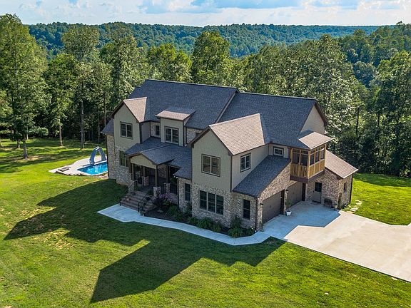 Spectacular sunrises & sunsets at "Life is Better" Farm, a rare 128 acre property just minutes from the Harpeth River State Park & only 35 min from Nashville. Gorgeous new custom home w/ main level master suite, huge top of the line Wolf kitchen, Screened Porch, Pool, 1BR/1BA In-Law Apt, full unfinished 2440sqft daylight basement + 3 working barns.Trails, idyllic running creek (4000 ft), 2 cleared ridges for potential home sites. Sweeping hilltop views of countryside & Harpeth River + Greenbelt!