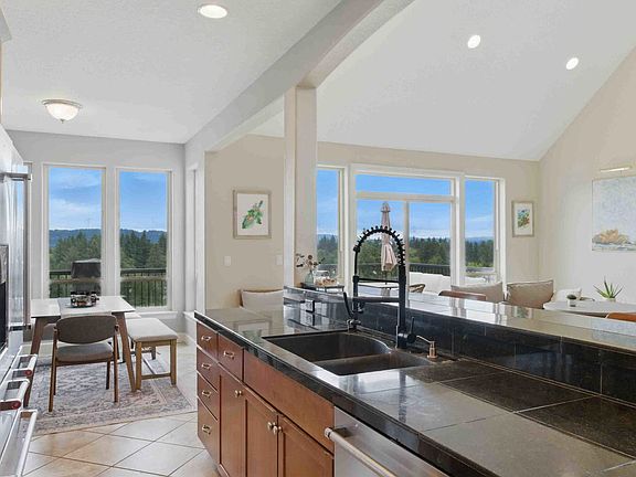 High vaulted ceilings are light, airy, and bright with amazing views of the Gorge. Sit and enjoy the views on the patio with a BBQ, open-concept kitchen with breakfast bar, and family/living area. There is a breakfast nook with a gas fireplace, as well as an office and another bedroom/workout room on the main level. The owner's retreat on the main level includes a tub and separate shower with a large walk-in closet. Washer/Dryer is also on the main level.