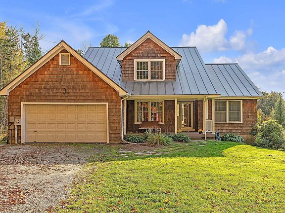 Country living at it's finest awaits you in Granville, Vermont. This cedar sided cape with a five year old standing seam roof nestled on 10.4 acres is simply enchanting. An attached garage with direct entry to the mudroom/laundry room, sunny kitchen with lots of windows, dining area, slider to the deck, and a toasty wood stove shared with the main living room are some features. Cathedral ceiling and a stunning array of windows face toward the pond and ever changing views of Bread Loaf Mountain. Plenty of room to gather or soak up the sun through these floor to ceiling windows. Wow, just wow!! There is even a more formal dining room area for those special occasions where you can welcome guests from the covered front porch into a grand foyer. The primary bedroom en suite is on the first floor, 2 more bedrooms and a full bath on the second floor. Need room for guests? Another bedroom, bonus room and full bath are in the basement with a sliding door walk out. Even the utility room is spacious. Green Mountain National Forest is a treasure to behold with the Middlebury Snowbowl and Long Trail Access nearby. Take a a short drive or mountain bike ride to Moss Glen and Warren Falls. 15 minutes to Sugarbush, 25 minutes to Mad River Glen, 45 min. to Killington and 45 min. to Waterbury and Montpelier. Property is being sold with 10.4 acres. Kubota and lawn mower included. Wicked fast ECFiber internet.Delayed showings start on Sat. Oct. 12 at 11 am at the open house.