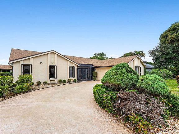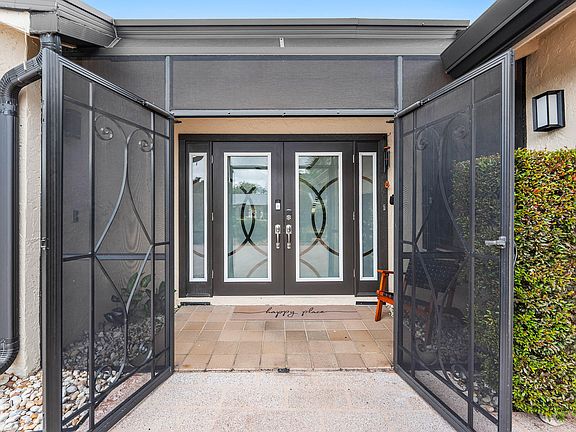 55+ Community: Beautiful modern single family home located in the highly desirable Rainberry Bay. Home boasts a tastefully renovated interior, with tile and vinyl floors, and updated fixtures and finishes. This charming kitchen includes bespoke SS appliances, wood cabinetry, intricate backsplash, and quartzite counters, and new roof coming 2028! Florida room offers additional living space as well as the comfortable Den/Office. The exterior patio and back yard offers plenty of room for dining and entertainment. Enjoy the active 55+ lifestyle in Rainberry Bay with 5 heated pools, 8 pickle ball courts, 10 Har-Tru tennis courts, clubhouse, theatre, or enjoy the walking and biking trails that surround this lovely community.