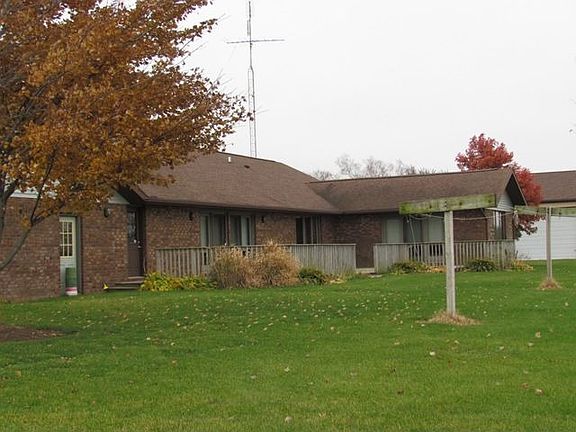 Escape to the country! Beautiful brick home on 6.2 acres with outbuildings, awesome country setting in Bainbridge Township. Custom built ranch with vaulted ceilings, large rooms and gracious flowing floor plan. This home boasts 2645 sf of living space with 4 bedrooms, 3 baths, formal living, family room with field stone fireplace plus large country kitchen. Kitchen offers a perfect place for entertaining with large center island kitchen, pantry, expansive counters, Amish custom cabinets plus large eating area. Beautiful master suite is sure to impress with its open space and great country views. Full basement with 9' ceilings is ready to be finished. Large deck off the back of the house provides a great place for entertaining and enjoying summer sunsets. Large front yard with mature plantings and back offers plenty of space for a large garden. Out buildings include steel 48' x 96' pole building with 14' ceilings, loading dock, 220 service, sep. well, plus older greenhouse.