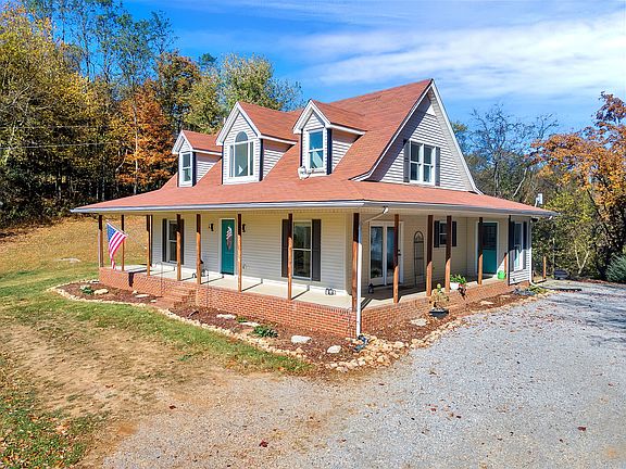 Country living at its best in this must-see private oasis, minutes from town! Welcome home to this picturesque, 2-story farmhouse with a Cracker Barrel inspired wrap-around covered deck. Relax in your rocking chair and soak in the peaceful tranquility of the woods with an abundance of wildlife. Enjoy upgrades like new engineered hardwoods throughout, new tile floor in the bathrooms, fresh and bright interior paint, floor to ceiling windows, and vaulted living room ceiling. Experience rural living on over 6 acres, perfect for the animal enthusiast. The back deck is massive and private, looking out onto the beautiful backyard trees. The property includes a well-built and versatile 60x32 foot pole barn which could be utilized however you choose. Water is supplied by a well located near the front of the property, which includes a brand new pump and filter. Propane line is installed from the tank to the house. This is a true treasure that's hard to find, come see it today!