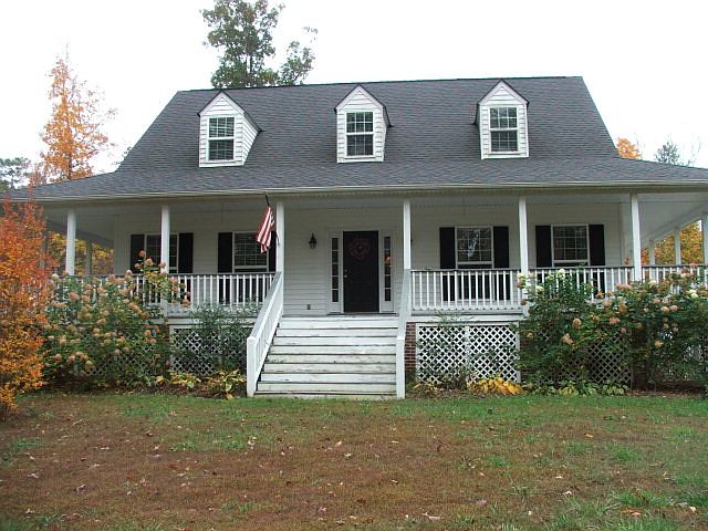 Close to Chesterfield, Blackstone and Dinwiddie County. Well built Cape Cod with wrap porch, double garage, large rooms, three heating sources. New patio with pavers, excellent for entertaining. Gas water less tank, heat pump never used. Well insulated with low electric bills, two wells one for watering one for house. Nice brick fire place in L/R, beautiful lay out with so much extras.