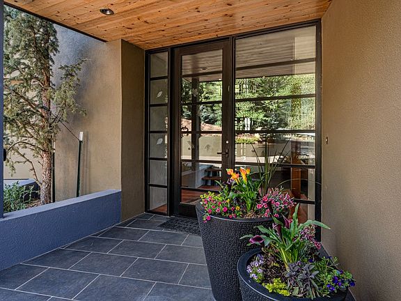 This custom built home is perfectly sited with unbeatable mountain views. Architecturally intelligent, first time on the market and impeccably maintained, this home has all of the amenities of quality living. The main floor has a beautiful owner's suite with a fireplace, bath, walk-in closet and French door to outside deck and portal. The living room has exceptional style with fireplace, soaring ceiling and glass wall engulfing mountain ambiance and the kitchen is light and view filled with Wolf, Bosch and Subzero appliances. The fine finishes include glass tile, unique high-gloss Parapan cabinetry, limestone and granite countertops. Dining is open to the mountain serenity and with maple buffet and access to outdoor built-in kitchen and portal. The spacious laundry/storage leads to a finished garage and wood working studio. Nature beckons with an outdoor hot tub. There is Trex decks, sound system inside/outside, and mature landscaping. There is an impressive use of rare wood such as Brazilian Rosewood that gives this contemporary home an inviting warmth. Upstairs is a stunning guest suite, additional bedroom with a full bath and walk-in closet. Open to the impressive views and to a private deck, the loft office has two built-in desks and bookshelves. This property is a rare piece of art.