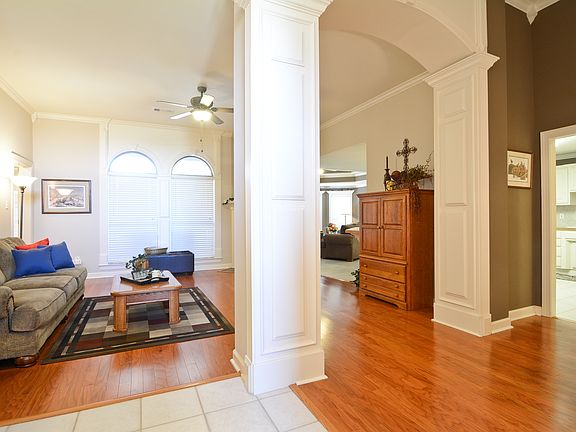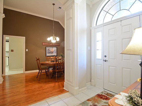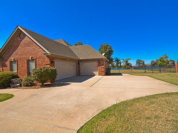 Beautiful all brick home on a one acre lake-front lot. This immaculate 4 bed/2.5 bath open floor plan home has two living spaces, hardwood floors, extensive crown molding and trim, high tray ceilings, large closets, safe room, 3 car garage, and fenced in yard. Large master suite with his/her sinks, two large walk-in closets, and huge corner tub and separate shower. Enjoy the view of the lake from your screened in porch, or go fishing from your own private dock on the lake.