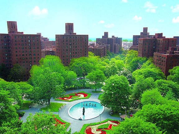 The one-bedroom Contemporary Apartment has ample space, lots of sun, traditional styling and best of all the most up-to-date kitchen finishes and modern appliances. Select from one of the two kitchen choices in either Arctic Ribbon or warm cherry. The cool tones of the Arctic Ribbon finish with sleek off-white and grey cabinets are complemented by slate grey granite countertops. The second kitchen finish features Warm Cherry cabinets with matching rose-toned granite countertops for a classically elegant look. And of course, residents have access to all the usual onsite amenities: Macys, supermarkets, blink Fitness, express bus service, the Parkchester subway stop (30 minutes to midtown), parks and 24-hour roving security. One bedrooms range in size from 506 to 705 square feet and rent for $1,185 to $1,295.