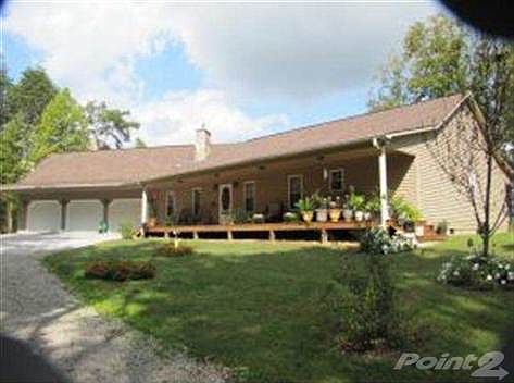 Beautiful one level ranch sitting privately on 16.4 acres. Mostly wooded, offering a serene, peaceful setting yet only 5 miles from town. The home has two master suites, both with huge walk-in closets and private baths. The heating (forced air, gas) has been supplemented with a Yodel wood stove. A three car garage is attached to the home and another three car garage is included for all your extra toys and tools. Long, gravel driveway to home (can not see home from road.) Please check out photos on line and call for appointment to see. Easy to show and very well kept property.