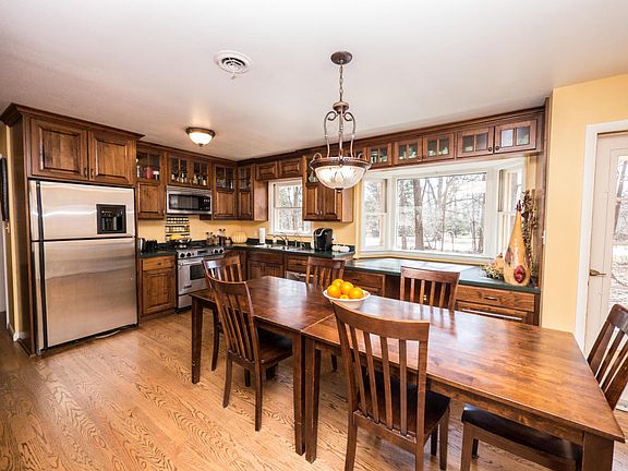 Exceptionally well maintained and beautifully updated, open concept brick ranch on fantastic 1 acre wooded lot. Stunning kitchen with lovely custom cabinets and SS appliances. Gleaming hardwood floors throughout. Enjoy nature through the two large picture windows. Brick NFP in both the spacious living room and formal dining room. First floor laundry, plus hookups in lower level that is framed and waiting to be finished, for even more living space.