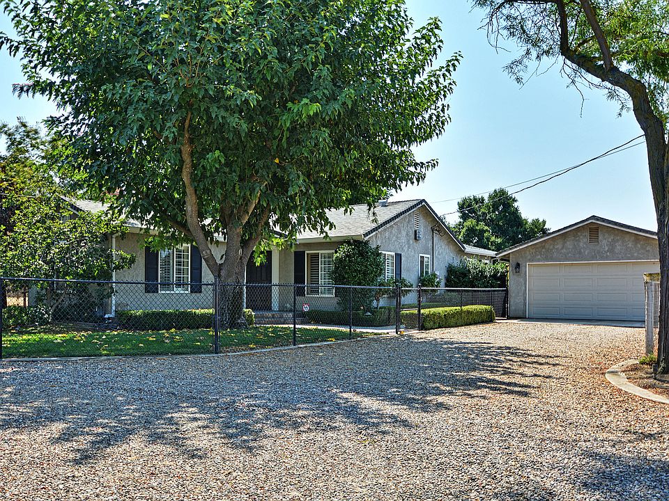 Classy country home on 2+ acres. Mature trees shade this wonderfully cared for 3 bedroom 2 bath cottage which features wood floors, crown molding, plantation shutters, fireplace and good storage. Access to a completely private backyard is from both master bedroom & back porch. The beautiful pool, gazebo & room to play is ideal for entertaining or quiet relaxation. Bring the horses, cars, toys! Property features a pad for barn or warehouse plumbed with water & electricity.