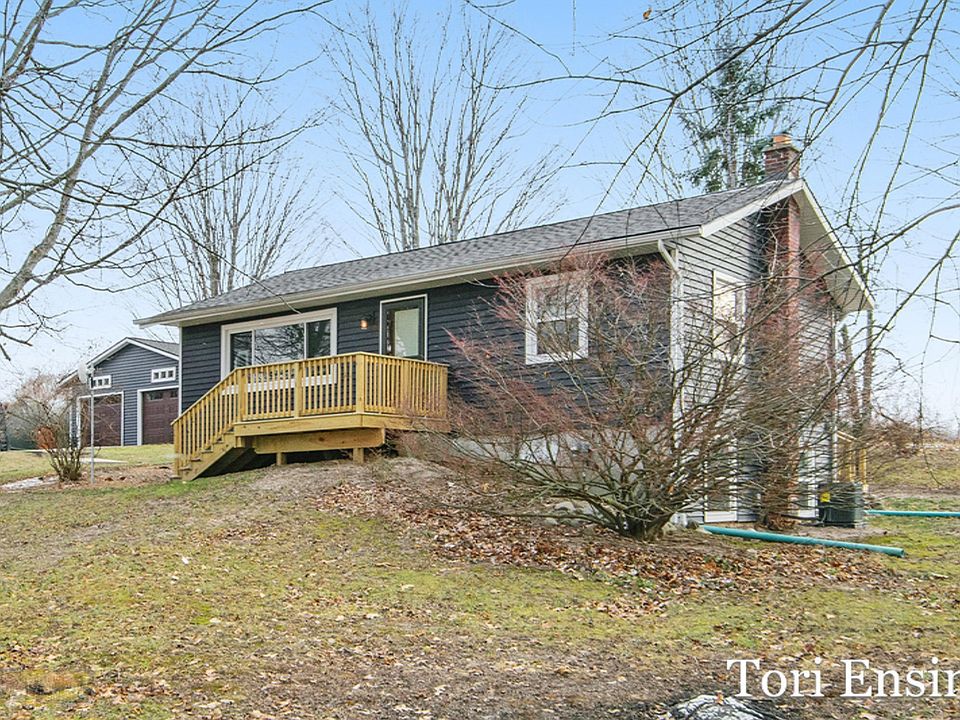 Completely move in ready 2 bed, 2 bath ranch home on just under 2 acres. Main floor offers nice kitchen with appliances staying, living room with large bay window, dining room, full bath and 1 bedroom. Lower level has an extra large bedroom, full bath, laundry and more! Recent updates include fresh paint, A/C, new siding on house and 2 stall detached garage, new carpeting, new flooring, new roof, new windows, and new decks on the front and back of home. All done in 2020. The work is finished! Now time to relax and enjoy this homes park like setting with beautiful trees and privacy!