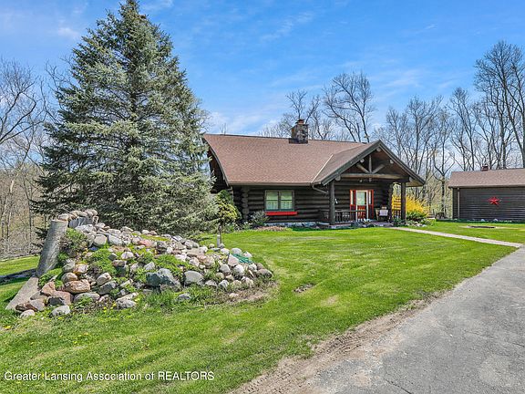This home has 3 fireplaces, 3 full baths, primary bath with a large bathtub. One of a kind of real log home sitting on the riverbank. Great hangout area in the pole barn, must see to appreciate what it has to offer. Seller built a tram to ride down to the river.