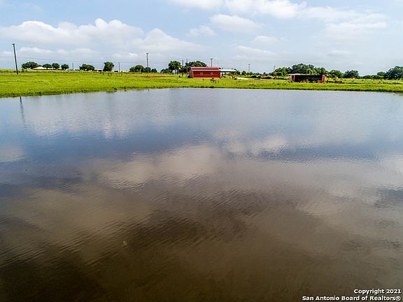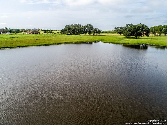 Madd Ox Farm is fully fenced, ag exempt, and the perfect size for a "just out of town" corner farm. Build a new home on this manicured property or expand on the living area in the main barn for a weekend "city escape." This very manageable farm has lush green Coastal Bermuda pasture with a wet-weather creek spilling into a half-acre pond with bass, catfish and perch. A beautiful mott of century-old live oaks is on the south corner, and native pecans are dotted across the barnyard and pasture. The land slopes down from the automatic gated entrance and barn area. Approximately 10 acres are in the 100-year floodplain. The main barn/living quarters is 32 x 40 ft. The storage area is partially insulated and perfect for a large workshop or can potentially be converted into more living area for a nice barndominium. Currently the interior living area is approximately 300 sq. ft. It includes a large bathroom, closet, tile flooring, mini-split A/C and heater, washer and dryer connections, outdoor vegetable sink, and a three-vehicle carport. Utilities include 200-amp electric service, East Central SUD water line, and a septic system. The 20 x 45 ft. livestock barn with covered pens includes an equipment shed and tack/feed room. The working pens come equipped with a squeeze chute and multiple gates for sorting livestock. There is a 10 ft. diameter water trough and solar-powered LED lights for feeding. The 20 x 25 ft. storage barn is attached to concrete curbing with compacted limestone base on the interior and a concrete approach. The fully fenced property also includes a remote-operated gated entrance with heavy duty cattle guard, a concrete driveway, horseshoe pits, and a beautiful 50 x 80 ft. garden mixed with natural soil and 40 yards of composted material sure to grow delicious veggies. The barnyard has approximately 550 ft. of irrigation lines with many convenient stub-up insulated faucets for watering the yard, garden area, and cattle pens.