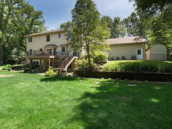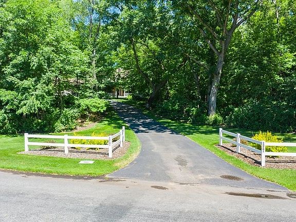 Spectacular quality built and excellent maintained home nestled amongst heavy woods and perennials. Beauty and privacy on over 2.5 acres in sought after neighborhood. Long driveway. Welcoming hospitality wrap around porch with weatherproof columns and railings. Almost 4,000 sq ft two story features 5 bdrms (3 with walk in closets), 4 baths. Peace of mind with new(er) roof/furnace/ac/humidifier and main/upper level carpeting. Marvin windows bring the beauty of outdoors in. Spacious Owners suite with vaulted ceiling and private bath - separate shower/soaking tub. Classic formal dining and living room. Comforting warmth of two fireplaces designed with built in shelving. 9' ceilings. Vinyl coated fencing backing up to pond. Main floor laundry with mudroom cubbies/closet, folding area and wash tub. Cooks kitchen - walk in pantry and desk area. Expansive main level maintenance free deck and lower level patio to back yard. In ground sprinkler. Close to Golf/Woodlands Park/Schools.