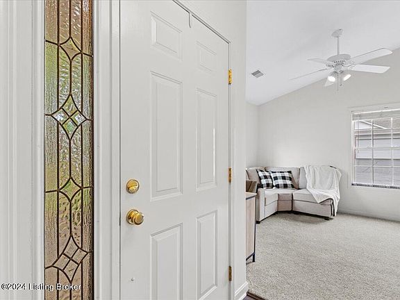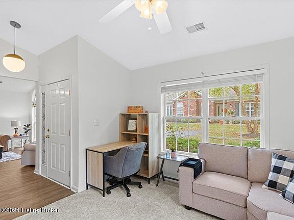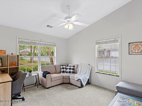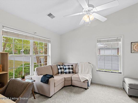 Discover this spacious patio-garden home offering 2,025 square feet of comfortable living. Step inside to find a generous living room featuring a cozy gas fireplace, adjacent to a formal dining room and a bright eat-in kitchen with ample cabinet space. Off the kitchen, enjoy a charming sunroom with separate heating and A/C—perfect for year-round relaxation. The main bedroom boasts an ensuite bath and a walk-in closet, while an additional large bedroom, also with a walk-in closet, connects to the living room. Near the entrance, a versatile den makes an ideal office or third bedroom. With abundant storage throughout, the home also includes a large 2-car garage with extra space or a creative workspace. The convenient laundry room is located between the kitchen and garage for easy access. Situated near Gene Snyder and the Parklands, this home is ideally located for both tranquility and convenience.