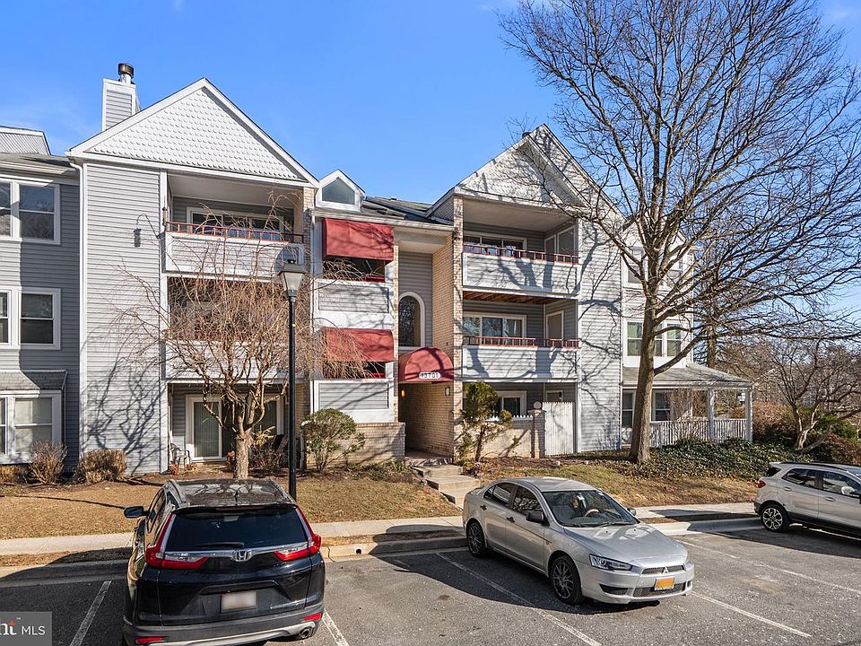 Welcome to your new home! This beautifully updated third-level one-bedroom, one-bath condo is freshly painted and features new carpet, and updated appliances making it ready for you to move right in. The generous living room boasts a stunning vaulted ceiling, complemented by a cozy wood-burning fireplace and a skylight that brings in natural light. A sliding glass door opens to a private balcony, providing a perfect spot to relax. Adjacent to the living area is a dedicated dining space with a mirrored wall, enhancing the spacious feel. The kitchen includes a convenient breakfast bar, and there's a utility room with stacked laundry for added convenience. The large bedroom features two closets and another vaulted ceiling for an airy ambiance, while the dual entry bath offers a skylight and double vanity. Plus, there's a storage unit in the building across the parking lot, and you're just steps away from the community pool. The condo is located minutes to the ICC and Rt. 29 making this a great location for commuters! Condo is non-warrantable no, FHA, no VA no Fannie/Freddie loans. Cash or secondary loan market only.