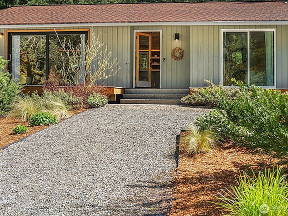 From the moment you turn onto the private driveway in desirable Reddings Beach, you'll know you've found quintessential Vashon Island living. This 1850 sq ft single-level home is fully remodeled with vaulted ceilings, glass sliders for seamless indoor/outdoor flow, a new kitchen and baths, a heat pump with AC, and new ironwood decks overlooking the serene natural setting. It offers 4 spacious bedrooms—all with exterior access—and professionally designed, irrigated landscaping with native plantings. The 1050 sq ft shop provides space for hobbies, storage, a heated office, and two cars. Set on 11 stunning acres—2 sun-filled and cleared, the rest forested for privacy—this turnkey retreat is just 1/4 mile from public beach access.