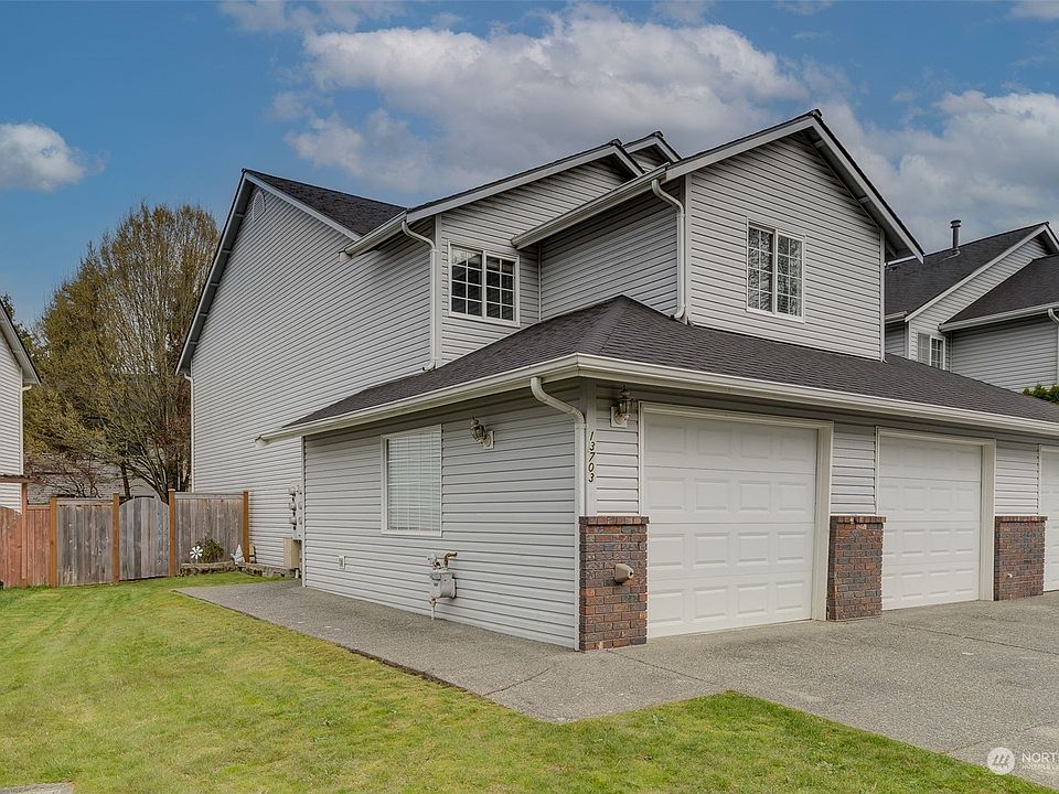 Presenting a Silver Firs residential townhouse with all the space you could need. Over 1800 sqft, 3 bedrooms, 2.5 baths, and 2-car garage. Perfect layout with large open kitchen, dining space, and family room. Sliding doors lead to a patio and expansive fully fenced yard. Interior features include new carpet, hard flooring, upgraded lighting. Enormous primary suite with full bath and walk-in closet. Turn half of the room into an office, workout space, or sitting area. Full-size washer and dryer on main floor with powder room, & separate entrance to garage. Extremely convenient location, walking distance to Silver Firs Shopping Center, Safeway, & restaurants. A townhome that truly lives like a house. Oh, and did we mention 2-CAR GARAGE!