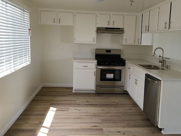 Quartz countertopsStainless-steel dishwasherStainless-steel gas rangeLinen storage