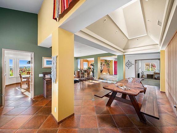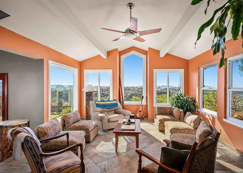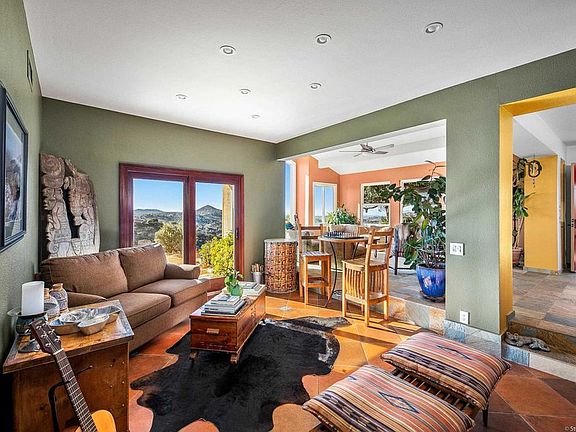 Location!! Views!! Own your own tranquil and private 5-bedroom hilltop estate with panoramic 360-degree views. Sunrise or sunset? Both are yours including dark night star-gazing. This home has a rich history of musical genius so grab those bongo drums and invite your friends! An artisanal pizza from the outdoor oven makes entertaining a breeze as your friends and family take a dip in the pool and jacuzzi. Special moments and spilling secrets occur on the cantilever deck. Peek up to see those local birds of prey watching over us. This ranch-style, southwest themed home is the last frontier in SoCal, offering almost 6 acres of self-sustaining land. A bountiful garden and edible forest at your private estate with land suitable for a vineyard...dreamy!! Inside, picture windows frame the sunset and a showcased dining area is bathed in natural light leading to long, lingering conversations. Are you a pet lover? A completely fenced dog run with a sandy beach area makes it fun to toss the ball with your favorite furry friend. Unique rock formations increase the energy vibration of the home, encompassing views of local mountains, canyons, hills, and valleys. Award-winning schools are nearby for the littles and also support your property value. Burgeoning Valley Center offers peace and quiet but close proximity to all that the San Diego lifestyle offers. Only 15 min to Escondido, 45 min to the Carlsbad and Oceanside beaches, 30 min to Palomar Mountain, 60 min to Anza Borrego desert, and approximately 50 min to San Diego Airport. Large events are welcome here with parking for up to 25-30 cars, in addition to your attached 3-car garage. Planting up to ½ acre of grape vines opens an opportunity for the owner to apply for a winery license. Use your imagination! Possibly an ADU? Buyer to verify all. We can't wait to see you!