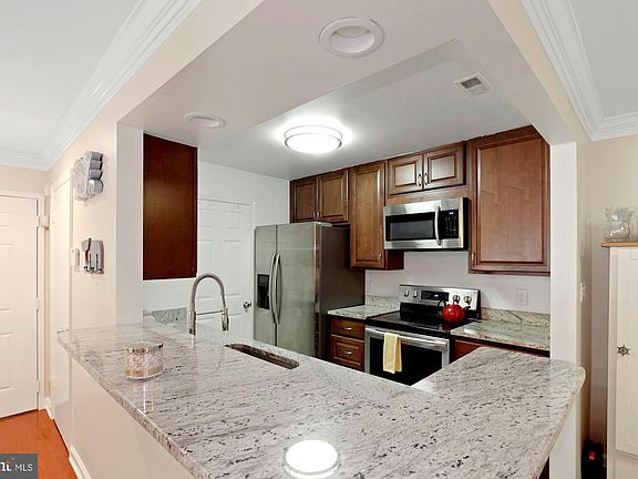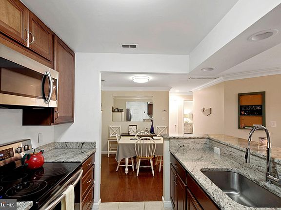 **Offers, if any, due Sun 9/13 by 8pm** Rarely-available 2-bed, 2-bath condo with upgrades galore! Enter to bright and airy living space with gleaming hardwood floors throughout. Gourmet kitchen boasts granite countertops with stainless steel appliances, ample cabinetry and eat-in space. Cozy up by the living room fireplace, accented with built-in shelving on either side, or relax on private patio with tree-lined views. Owner's suite features two large closets and spa-like bath with dual sinks and tiled shower. Spacious second bedroom and separate full guest bath with upgraded vanity and tile. Washer and dryer in-unit! Newer HVAC with bluetooth thermostat (2019) and end-to-end renovation completed in 2017. Community includes a gym, outdoor pool and party/meeting room. Short distance to Fairland Rec park with walking/biking trails, soccer fields and tennis courts. Just minutes to Target, grocery and restaurants. Easy access to 200, 29 and 95. Enjoy the stair-free life in this pet-friendly first floor condo!
