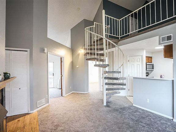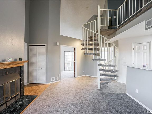 Bright upper condo. New kitchen quartz counter, new sink and faucet. New carpet and pad. Oak entry and balcony entry. Roomy, open floor plan with good cross ventilation from front and back balconies. Vaulted living area has wood burning fire place, ceiling fan and front balcony. Efficient kitchen with newer appliances. Full bath. One bedroom has French doors with access to the back balcony and a mobile room evaporative cooler. The other bedroom has a new light and ceiling fan. Washer and dryer are in the unit. New water heater and furnace 2019. Dormer walk-in closet off loft provides extra storage. This unit has a reserved, covered parking space at the base of the stairs. There is additional parking in the general parking lot. Excellent location is adjacent to Cherry Creek State Park, close to highways, shopping, restaurants, and DTC. Down the road from Nine Mile Light Rail Station and only 2 blocks to the bus stop. Cherry Creek Public Schools. Quick close desirable. (New photos coming soon!)