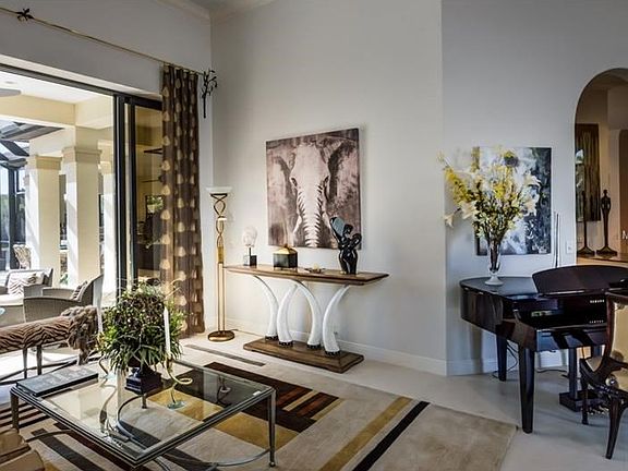 Enjoy the sophistication of this home from the moment you pull through the bordering Cypress trees. This John Cannon custom home immediately invites you in with limestone floors and grand 18' tray ceilings in the living room. 10' sliders beckon you outdoors to the tranquil pool and spa with two covered sitting areas, relaxing fireplace, outdoor kitchen with quartz countertops and perfect space for dining al fresco. And best of all is the long range water views & southern exposure to provide hours of sunlight on your pool. Expansive kitchen is perfect for the gourmet chef. Two built-in Miele wall ovens, Miele warming drawer, Miele wall steamer and dishwasher, Subzero fridge, DCS Fisher Paykel 5 burner gas cooktop & 11'X4" center island, perfect for entertaining. Under counter lighting, upper cabinets w/rain glass display, decorative hanging pendants over island & gorgeous Van Gogh granite counters & backsplash completes this masterpiece. Eat in dining is complete with built-in banquette that can comfortably seat 8. Gathering room has tray ceiling w/rope lighting & disappearing glass sliders to bring the outdoors in. Roomy master suite w/sitting area, custom walk-in closet, master bath has Kohler deep spa tub, separate his & her walk-in showers/Pharo shower system complete w/rain head, body spray and hand held. Office w/hardwood cherry floors on diagonal, bonus room in back overlooking lake, it is the perfect flex space or can be used as a 4th bedroom. This home has every feature imaginable.
