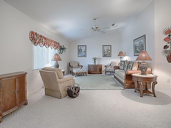 Great price for a furnished home in this Del Webb community. Totally furnished Palm ll model except for the 2nd bedroom. The vaulted ceilings give you lots of room, plus a large 12 x 24 florida room, huge kitchen, inside laundry, outside patio and on a corner lot with lots of privacy. This fine home is close to the Horizon center and pool, the golf course and Toppers restaurant. Enjoy the Florida life style of what this community offers. See this fine property today.