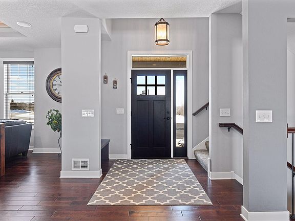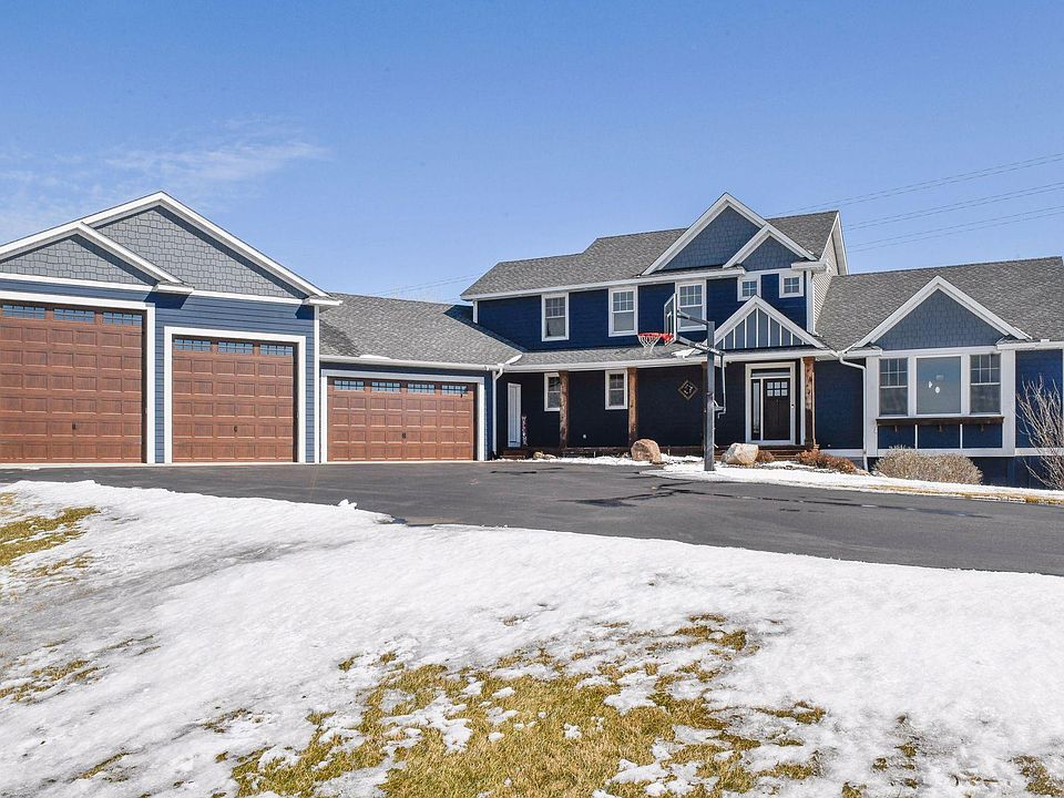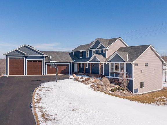 Newer custom built walkout on 5+ acres. Main floor owner's suite. Endless garage space, nearly 1900 sqft! Heated & insulated w/ 12 & 14 ft high doors both of which are 12 ft wide. Great for campers, boats and/or trailers. If you don't need the garage space, convert to a sports court with the 16 foot high ceilings. Many details throughout. The heart of the home is in the well planned kitchen. Large center island, alder cabinets w/ dovetailed drawers & many custom built-in features, custom lighting, 6x10ft walk-in pantry, granite countertops, tile backsplash, pot filler & beverage fridge. The upper level includes two huge bedrooms with large walk-in closets, a shared bathroom & upper level laundry. The lower level is meant to entertain! Large spaces with a walk-up wet bar and center island that everyone will want to gather around. Other amenities include a massive maintenance free deck, 17 zone irrigation system, 3 zone HVAC, laundry on each floor, hot tub, front porch & tons of storage.