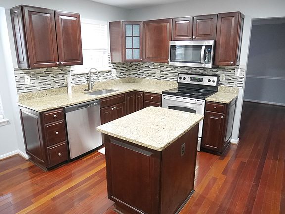 This beautiful 5 bedroom, 3 full bath home is complete with hardwood flooring throughout and ceramic tile bathroom floors. The kitchen boasts gorgeous cherry cabinetry, granite counter tops, stainless steel appliances, pantry and center island. Just off the family room is the spacious sunroom with LVP flooring leading out to the private deck. Other amenities include upper level laundry area, family room plus formal dining room on the main level, ample storage space in the basement, and a two car garage with a finished room perfect for an office space, play room, etc. Located in a prime location nestled in a a private cul-de-sac backing to bike trail. Call us now to set an appointment. DON'T MISS OUT! *One Year Lease required *$45 application fee per each occupant over 18 years old. *Background and Credit Check Required *Minimum Credit Score 650 or Higher Preferred (All Applicants) *$100 Maintenance Deductible