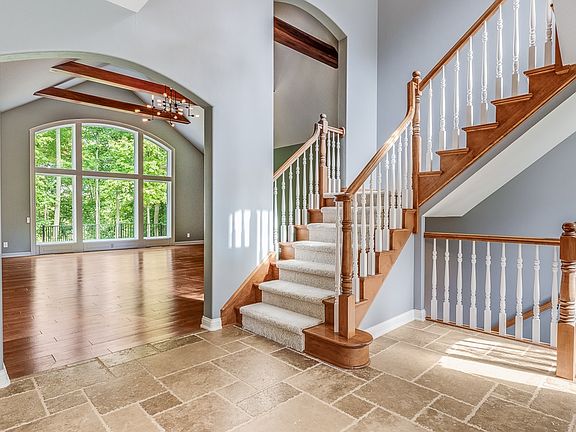 OPEN HOUSE Saturday, October 6th 1-3 pm At the end of a cul-de-sac, where Big Indian Creek ripples through a wooded ravine, is a gorgeous brick home on a three-acre lot that offers the most private, secluded experience. From hand-scraped hardwood floors to a stunning stone fireplace, from the lower level theater room to the heated five-car garage, this is the wooded suburban escape that dreams were made of. Completely updated and completely ready for you. Host dinner parties in the updated kitchen, make the most of the wine storage space, explore your back yard by taking the stairway to the creek--this is a chance at a life of quiet luxury, set in the most gorgeous Indiana woodland. Home Details: 5,512 square feet; three acres; five bedrooms; four and a half bathrooms; Highlands of Scotia Subdivision; new interior paint; travertine floor in foyer and dining room; hand-scraped hardwood floors throughout first floor; updated kitchen has granite countertops, stainless steel appliances, open bar, large pantry; wine storage; laundry room has incredible storage and counterspace, hook-ups for two washers and two dryers, office area; first-floor master has updated master bathroom with large walk-in closet; two of the upstairs bedrooms have skylights and sloped ceilings; finished walk-out basement with stone, gas fireplace, storage rooms, theater area; heated five-car garage; beautiful landscaping; stone and concrete outdoor living space with fire pit and stairway to the creek; wooded lot; Southwest Allen County Schools